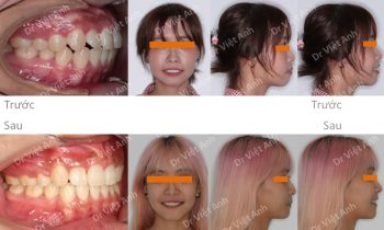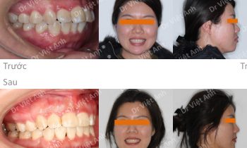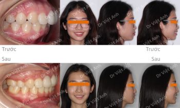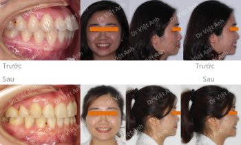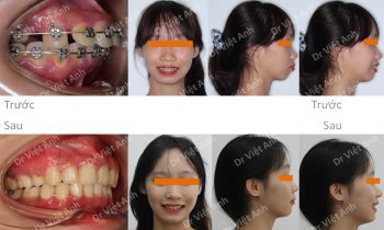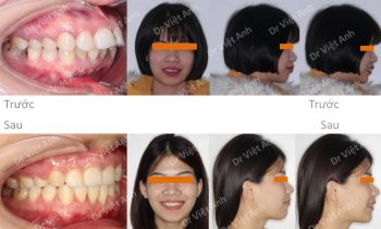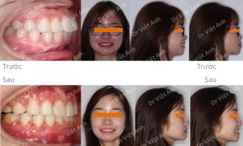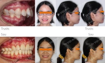 Hình ảnh trước khi niềng răng tại trung tâm niềng răng chuyên sâu Thạc sĩ Bác sĩ nội trú Việt Anh: răng cửa chìa, góc nghiêng môi hơi nhô, đường giữa răng hai hàm lệch nhau Phương án niềng răng mắc cài mặt trong: nhổ 4 răng số 4, dùng mắc cài mặt lưỡi 2…