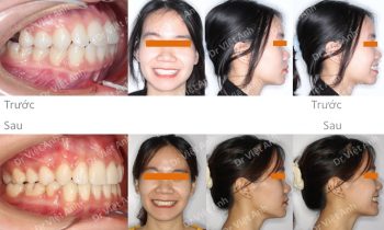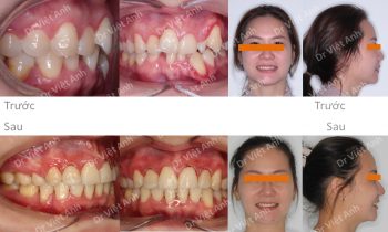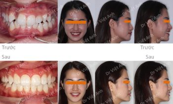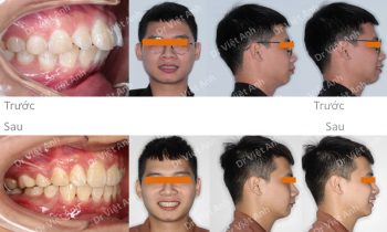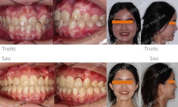 Hình ảnh trước khi niềng răng tại trung tâm niềng răng chuyên sâu Thạc sĩ Bác sĩ nội trú Việt Anh: răng lộn xộn, răng cửa không đều nhau, khớp cắn sâu, hàm trên chìa Phương án niềng răng mắc cài kim loại: không nhổ răng, mài kẽ răng tạo khoảng sắp đều vào cắm…