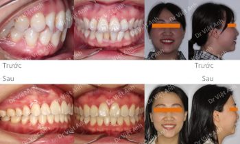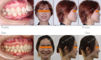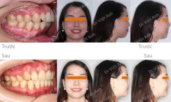 Hình ảnh trước khi niềng răng tại trung tâm niềng răng chuyên sâu Thạc sĩ Bác sĩ nội trú Việt Anh: răng cửa hàm trên chìa ra trước, khớp cắn sâu, góc nghiêng không hô Phương án niềng răng mắc cài mặt trong: vì góc nghiêng không hô nên bác sĩ quyết định phương án…