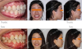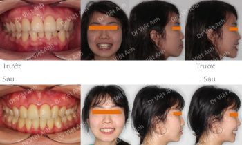 Trường hợp hô, cung hàm méo, khớp cắn sâu được khắc phục thành công bằng mắc cài mặt lưỡi, nhổ 4 răng