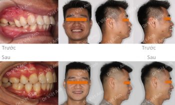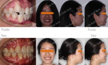 Hình ảnh trước khi niềng răng tại trung tâm niềng răng chuyên sâu Thạc sĩ Bác sĩ nội trú Việt Anh: góc nghiêng thấy môi nhô, răng chìa, khớp cắn sâu, cung hàm bên phải bị đổ vào trong Phương án niềng răng mắc cài mặt trong: nong rộng cung hàm, nhổ 4 răng, kéo…