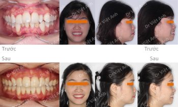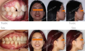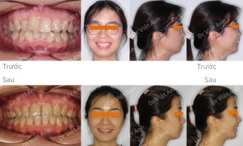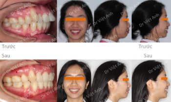 Trường hợp vẩu, răng lộn xộn được khắc phục bằng mắc cài kim loại, nhổ 4 răng