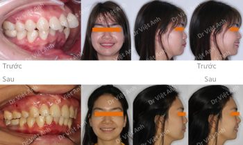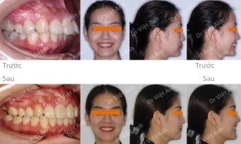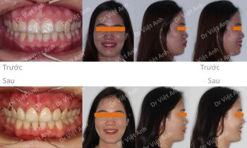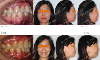Hình ảnh trước khi niềng răng tại trung tâm niềng răng chuyên sâu Thạc sĩ Bác sĩ nội trú Việt Anh: răng hàm trên chìa, khớp cắn sâu, răng hàm dưới lộn xộn, góc nghiêng thấy môi vẩu Phương án niềng răng mắc cài mặt trong: nhổ 4 răng số 4, hàm trên cắm 2…