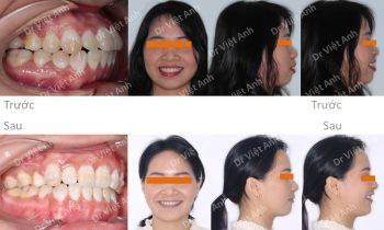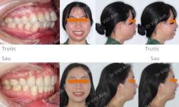 Hình ảnh trước khi niềng răng tại trung tâm niềng răng chuyên sâu Thạc sĩ Bác sĩ nội trú Thanh Thúy Beauty & Health Care: răng khấp khểnh lộn xộn cả hai hàm, khớp cắn sâu, góc nghiêng bình thường hơi móm Phương án niềng răng mắc cài kim loại: không nhổ răng, sắp đều…
