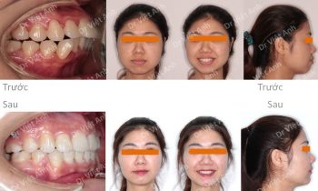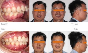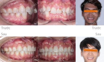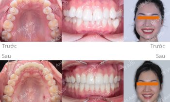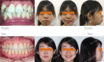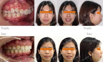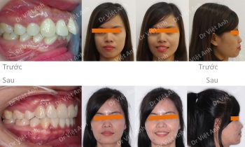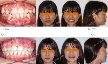 Tình trạng trước khi niềng răng tại trung tâm niềng răng chuyên sâu thạc sĩ bác sĩ nội trú Việt Anh: răng cửa hơi lộn xộn, 2 chiếc răng cửa giữa vênh ra ngoài như răng thỏ. Đường giữa 2 hàm hơi lệch nhau. Phương án niềng răng mặt trong: không nhổ răng, mài kẽ…