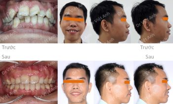 Tình trạng trước khi niềng răng tại trung tâm niềng răng chuyên sâu thạc sĩ bác sĩ nội trú Việt Anh: răng hai hàm đều chìa, hàm trên chìa nhiều hơn, nhìn thẳng và nhìn nghiêng môi đều bị nhô ra trước. Răng hơi lộn xộn. Phương án niềng răng mắc cài pha lê: Nhổ…