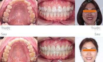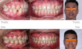 Tình trạng trước khi niềng răng tại trung tâm niềng răng chuyên sâu thạc sĩ bác sĩ nội trú Việt Anh: răng thưa ở cả hai hàm, khớp cắn đối đầu không có độ cắn phủ của hàm trên Phương án niềng răng mắc cài kim loại: kéo khít các khe răng thưa hai hàm,…