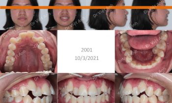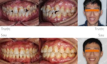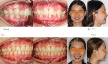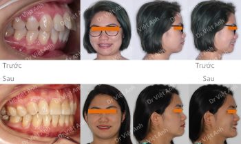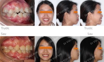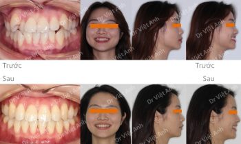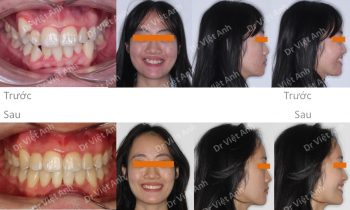 Hình ảnh trước khi niềng răng tại trung tâm niềng răng chuyên sâu Thạc sĩ Bác sĩ nội trú Việt Anh: khớp cắn sâu, răng cửa hàm trên chìa nhiều, môi trên hơi nhô, cười hở lợi Phương án niềng răng mắc cài pha lê: không nhổ răng, kéo lùi toàn hàm trên bằng minivis,…
