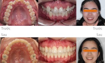 Trường hợp răng hàm trên chìa, cười hở lợi, khớp cắn sâu được khắc phục bằng mắc cài pha lê, không nhổ răng
