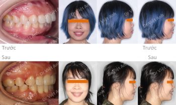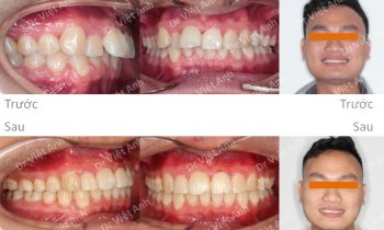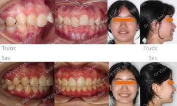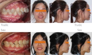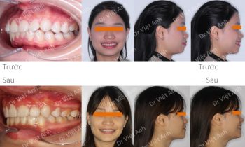 Hình ảnh trước khi niềng răng tại trung tâm niềng răng chuyên sâu Thạc sĩ Bác sĩ nội trú Việt Anh: răng cửa chìa, khớp cắn đối đầu, góc nghiêng môi nhô Phương án niềng răng mắc cài kim loại: nhổ 4 răng, kéo lùi răng cửa 2 hàm, không dùng vis Kết quả niềng…