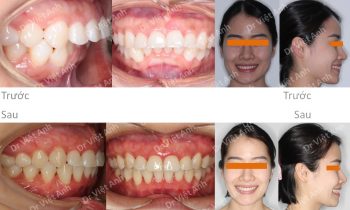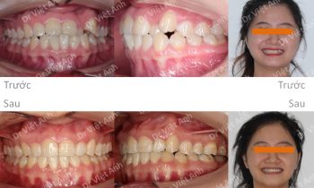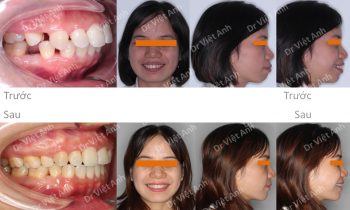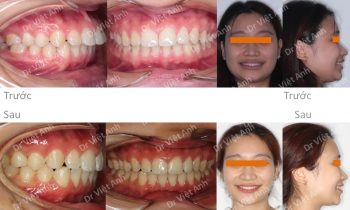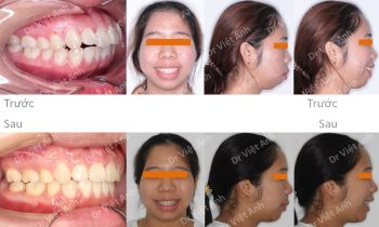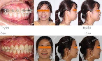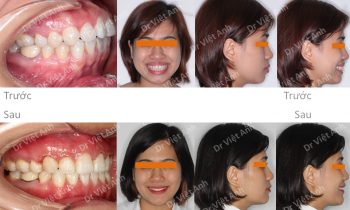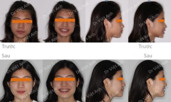 Hình ảnh trước khi niềng răng tại trung tâm niềng răng chuyên sâu Thạc sĩ Bác sĩ nội trú Việt Anh: khách hàng có tình trạng khớp cắn ngược, cười không thấy hàm trên, góc nghiêng móm, đường giữa hàm dưới lệch sang phải Phương án niềng răng mắc cài mặt trong: không nhổ răng,…