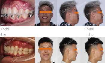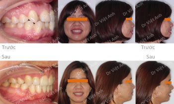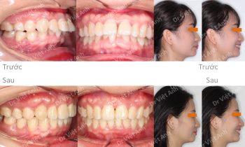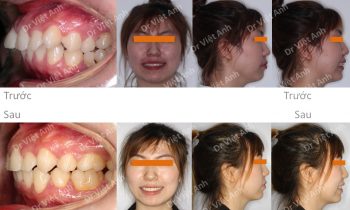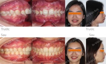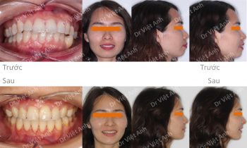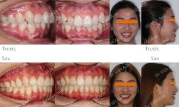 Hình ảnh trước khi niềng răng tại trung tâm niềng răng chuyên sâu Thạc sĩ Bác sĩ nội trú Việt Anh: răng lộn xộn cả hai hàm, hàm trên có 1 răng cửa thụt vào trong nên đường giữa hàm trên lệch sang phải, góc nghiêng bị hô Phương án niềng răng mắc cài mặt…