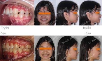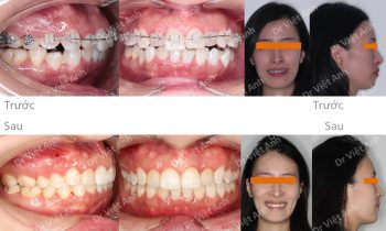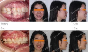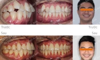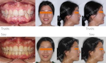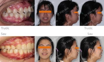 Hình ảnh trước khi niềng răng tại trung tâm niềng răng chuyên sâu Thạc sĩ Bác sĩ nội trú Việt Anh: đã niềng mặt trong hai hàm ở một nha khoa khác nhưng răng vẫn lộn xộn, hàm trên đã đổi ra niềng mặt ngoài. Hàm trên bị nghiêng mặt phẳng cắn, cười bị méo….