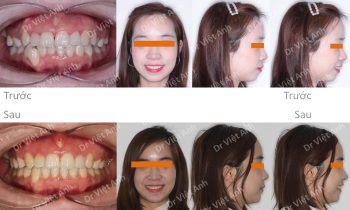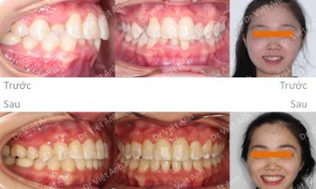 Hình ảnh trước khi niềng răng tại trung tâm niềng răng chuyên sâu Thạc sĩ Bác sĩ nội trú Việt Anh: khách hàng cảm thấy bị hô, răng cửa chìa, góc nghiêng môi nhọn, răng hàm bên trái bị cắn chéo dạng kéo (hàm trên nằm quá ra phía ngoài so với hàm dưới) Phương…