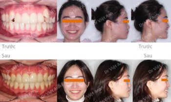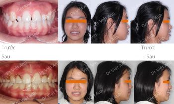 Hình ảnh trước khi niềng răng tại trung tâm niềng răng chuyên sâu Thạc sĩ Bác sĩ nội trú Việt Anh: khách hàng có tình trạng hô khá nặng, môi nhô nhiều, cằm lẹm, răng cửa chìa, hơi lộn xộn Phương án niềng răng mắc cài mặt trong: nhổ 4 răng số 4, kéo đóng…