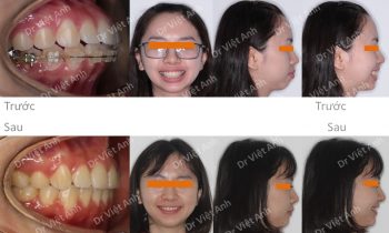 Tình trạng vẩu cải thiện rõ rệt sau khi niềng răng mặt trong nhổ 4 răng để chữa hô