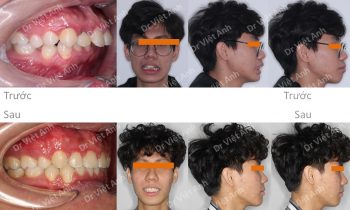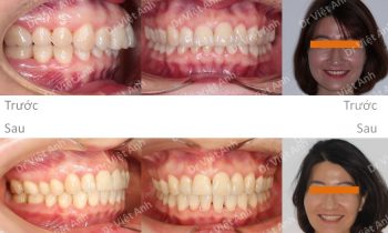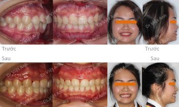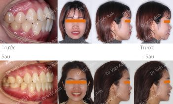 Hình ảnh trước khi niềng răng tại trung tâm niềng răng chuyên sâu Thạc sĩ Bác sĩ nội trú Việt Anh: khách hàng có tình trạng vẩu khá nặng, góc nghiêng môi nhô nhiều, cằm lẹm Phương án niềng răng mắc cài kim loại tự khóa: nhổ 4 răng số 4 để kéo lui răng…