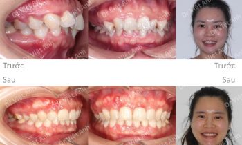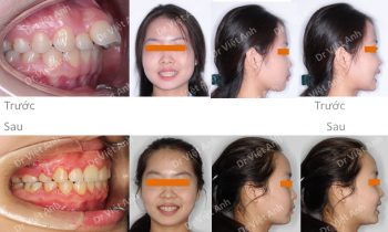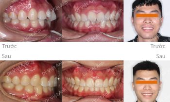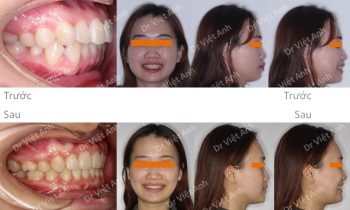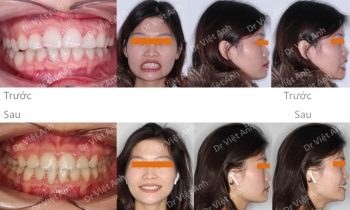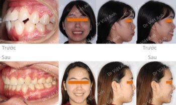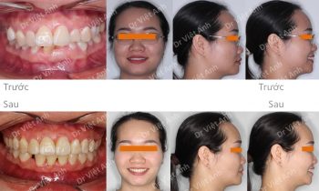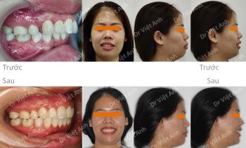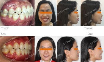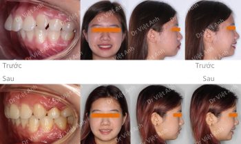 Hình ảnh trước khi niềng răng tại trung tâm niềng răng chuyên sâu Thạc sĩ Bác sĩ nội trú Việt Anh: khách hàng có tình trạng hô, răng cửa chìa, môi dày và nhô, mất 3 răng hàm ở hàm dưới Phương án niềng răng mắc cài kim loại: nhổ 2 răng số 4 hàm…
