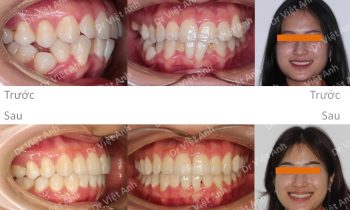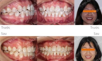 Hình ảnh trước khi niềng răng tại trung tâm niềng răng chuyên sâu Thạc sĩ Bác sĩ nội trú Việt Anh: cung răng hàm trên vuông, phần răng cửa không có độ cong, hàm dưới lộn xộn nặng, khớp cắn đối đầu Phương án niềng răng mắc cài mặt trong: khách hàng đã tư vấn…