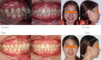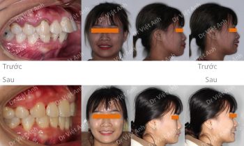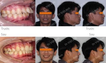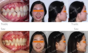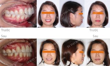 Tình trạng trước khi niềng răng tại trung tâm niềng răng chuyên sâu thạc sĩ bác sĩ nội trú Việt Anh: góc nghiêng bị hô nhìn ko sang, răng cửa hàm trên chìa nhiều, răng 2 hàm hơi lộn xộn, khớp cắn sâu Phương án niềng răng mắc cài kim loại: nhổ 4 răng để…