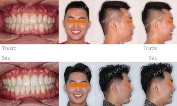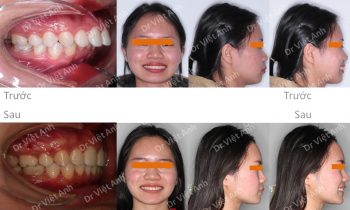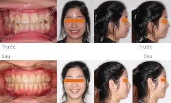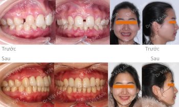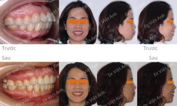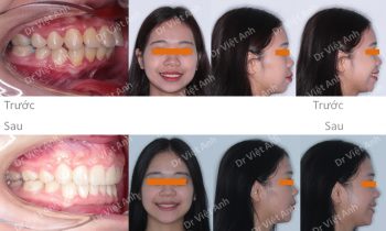 Tình trạng trước khi niềng răng tại trung tâm niềng răng chuyên sâu thạc sĩ bác sĩ nội trú Việt Anh: môi dày và nhô ra trước nhiều, răng hai hàm đều chìa. Đường giữa 2 hàm hơi lệch nhau. Phương án niềng răng mắc cài kim loại: nhổ 4 răng số 4, hàm trên…