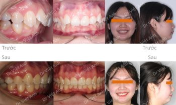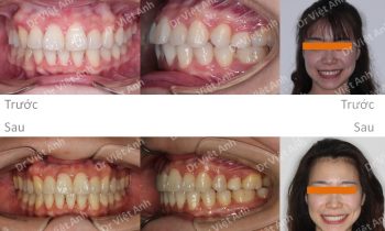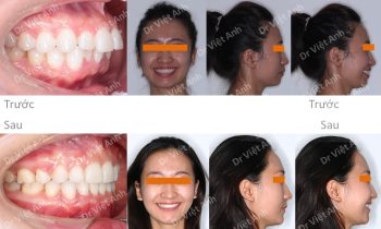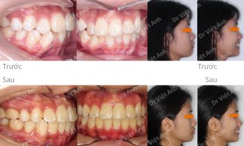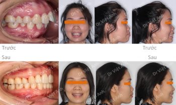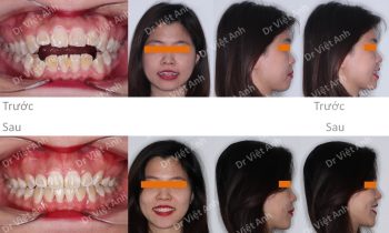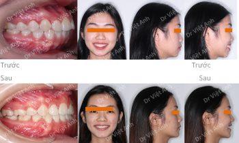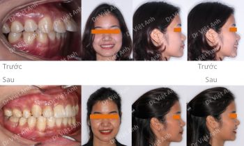 Hình ảnh trước khi niềng răng tại trung tâm niềng răng chuyên sâu Thạc sĩ Bác sĩ nội trú Việt Anh: răng lộn xộn hai hàm, răng cửa chìa, góc nghiêng môi nhô, bị thiếu răng nanh (số 3) hàm trên bên phải nên đường giữa răng hàm trên lệch sang phải Phương án niềng…