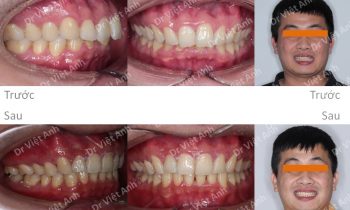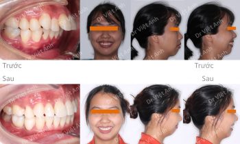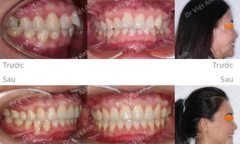 Tình trạng trước khi niềng răng tại trung tâm niềng răng chuyên sâu thạc sĩ bác sĩ nội trú Việt Anh: khách hàng cảm thấy miệng bị hô, cằm hơi lẹm, răng lộn xộn Phương án niềng răng mặt trong: nhổ 4 răng số 4 và cắm 2 vis hàm trên để kéo lùi tối…