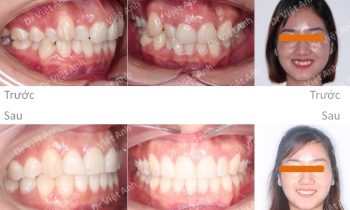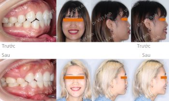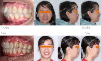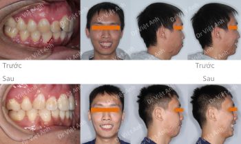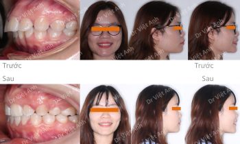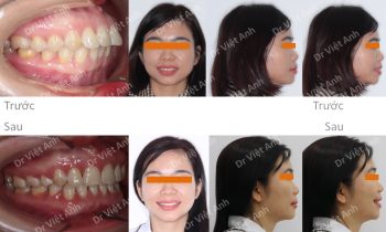 Hình ảnh trước khi niềng răng tại trung tâm niềng răng chuyên sâu Thạc sĩ Bác sĩ nội trú Việt Anh: góc nghiêng hô, môi dày, răng hơi khấp khểnh hàm dưới Phương án niềng răng mắc cài mặt trong: nhổ 4 răng số 4, kéo lùi răng cửa 2 hàm Kết quả niềng răng…