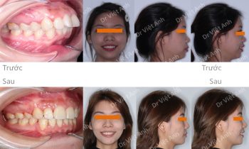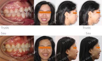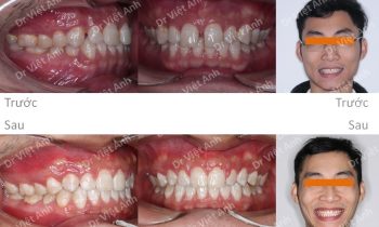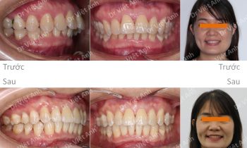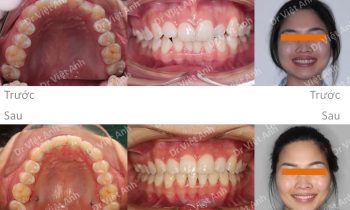 Hình ảnh trước khi niềng răng tại trung tâm niềng răng chuyên sâu Thạc sĩ Bác sĩ nội trú Việt Anh: răng lộn xộn cả hai hàm, nụ cười mất thẩm mỹ Phương án niềng răng mắc cài mặt trong: khách hàng không muốn nhổ răng số 4, tiến hành mài kẽ răng và kéo…