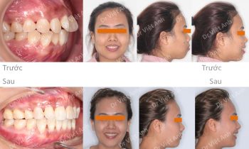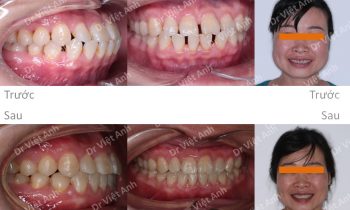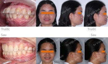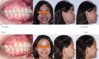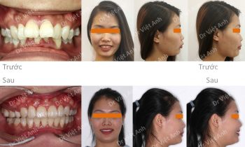 Tình trạng trước khi niềng răng tại trung tâm niềng răng chuyên sâu thạc sĩ bác sĩ nội trú Việt Anh: cười hở lợi, răng lộn xộn, mất 3 răng hàm ở hàm dưới, góc nghiêng môi hơi nhô Phương án niềng răng mặt trong: nhổ 2 răng số 4 hàm trên, hàm dưới kéo…
