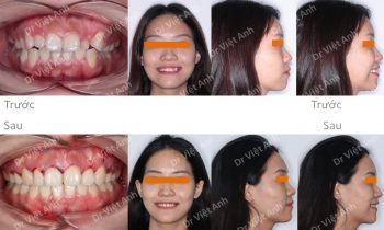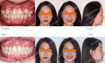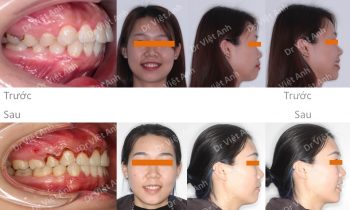 Tình trạng trước khi niềng răng tại trung tâm niềng răng chuyên sâu thạc sĩ bác sĩ nội trú Việt Anh: răng hàm trên khấp khểnh lộn xộn, nụ cười không được thẩm mỹ lắm, đã mất 2 răng hàm số 6 hàm dưới Phương án niềng răng mắc cài pha lê: nhổ 2 răng…