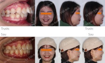 Tình trạng trước khi niềng răng tại trung tâm niềng răng chuyên sâu thạc sĩ bác sĩ nội trú Việt Anh: răng lộn xộn cả hai hàm, hơi hô Phương án niềng răng mắc cài kim loại: sau khi mô phỏng mức độ kéo môi vào, khách hàng thấy khi nhổ răng số 4 kéo…
