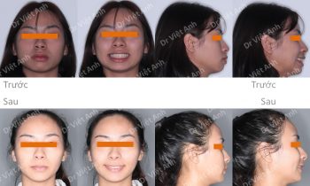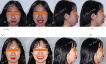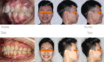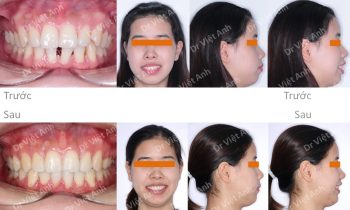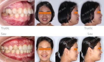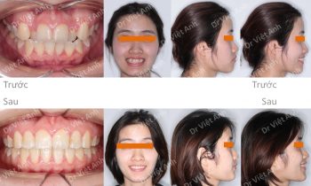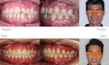 Tình trạng trước khi niềng răng tại trung tâm niềng răng chuyên sâu thạc sĩ bác sĩ nội trú Việt Anh: răng khấp khểnh, khớp cắn đối đầu, 2 răng cửa bị cắn ngược, lệch đường giữa hai hàm, nụ cười kém thẩm mỹ vì răng không đều. Phương án niềng răng mắc cài kim…
